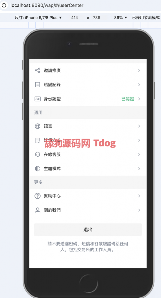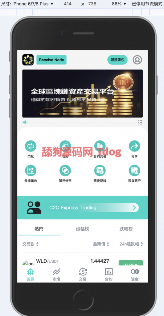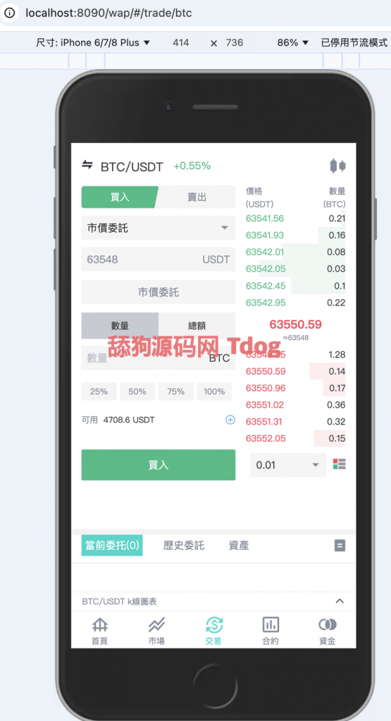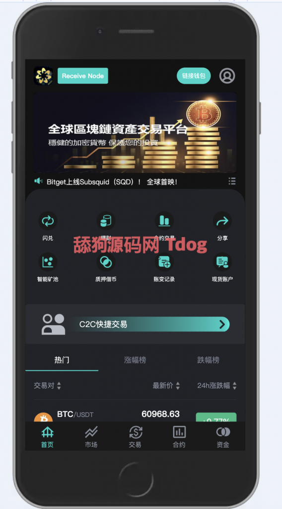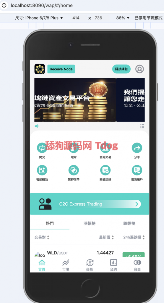 这套产品和我下面要发的MT10套用的是一个后台 只是UI不一样 功能都大差不差 带了一个C2C 只是多了一个dapp登陆 业务场景也就不一样了拿到有一段时间了今天抽空也跑了一遍流程 都能跑的通 本地我是挂的我二开之后的api用账号密码测试的 移动端和PC端也都是VUE的 后台jsp api Java