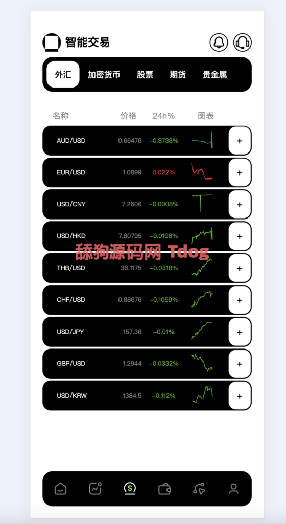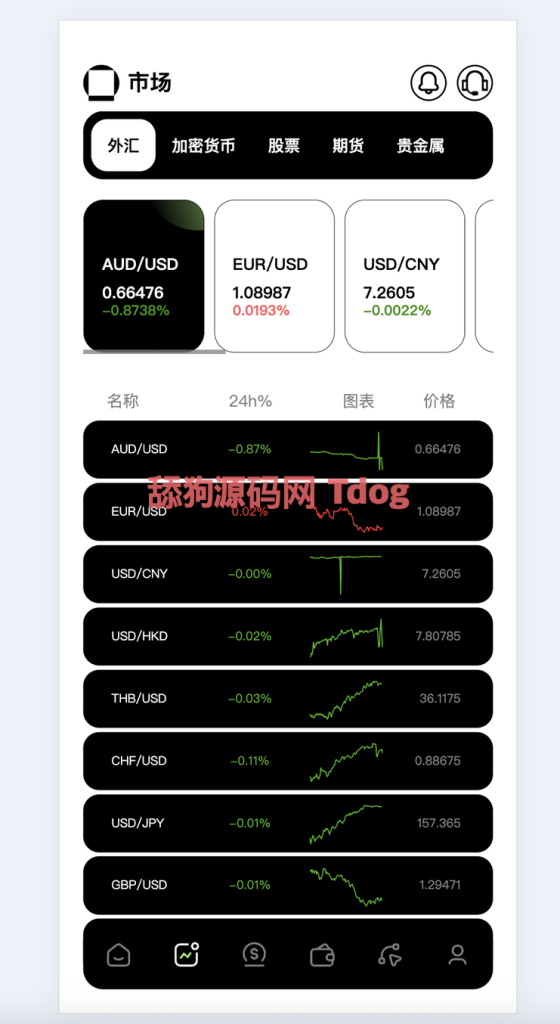 九国语言 交易种类有外汇 加密货币 股票 期货 还有ETF 整体都接全了 各种类下的产品都可以随意添加 API走的是付费API 加密货币数据走的蜜蜂查 其他的类别也都是付费API 好处是数据可以做到和官方百分之99同步 坏处就是贵