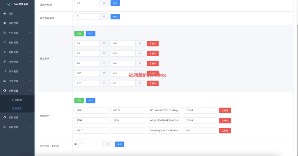 系统主要功能有合约、秒合约、借贷、慈善类的NFT 还有一个定投的智能交易功能 整体功能全部都做齐了